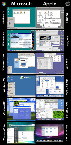 Eccovi un'immagine trovata in giro che rappresenta "l'evoluzione" dei sistemi operativi della casa Microsoft e Apple.