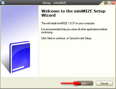 Per scaricare MiniMIZE vai su questa pagina Web e clicca sulla voce Download. Una volta terminato il download, apri il file scaricato (Setup_1.0.37.exe), facendo doppio click su di esso. Nella prima finestra, clicca sul pulsante Next.