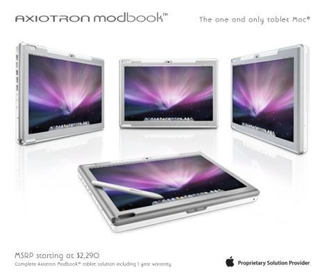 Non si può non rimanere a bocca aperta davanti alla nuova creazione firmata Appl, infatti Axiotron Modbook il primo e unico computer Mac touch screen ideale per Mobile Users, Business-Man, artisti e studenti potrebbe entrare con prepotenza nel mercato battendo i prodotti della concorrenza.