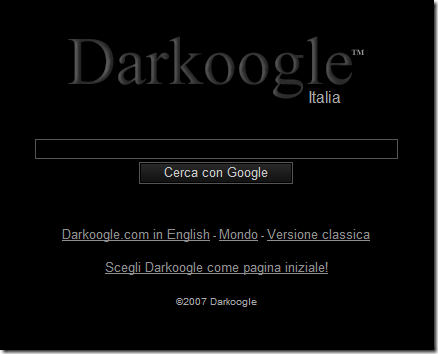Tempo fà, vi avevo segnalato Cooloogle ...e oggi grazie alla segnalazione di Gary vi mostro Darkoogle.