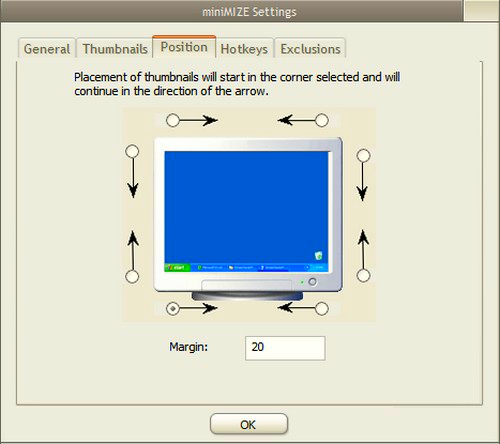 Nella finestra comparsa, tramite la scheda General, puoi decidere se far partire automaticamente il programma all’avvio del sistema (mettendo il segno di spunta accanto alla voce start MiniMIZE when I Log-In), se riaprire le finestre minimizzate tramite doppio o singolo click (tramite il menu situato accanto alla voce Restore Windows using) e se muovere le anteprime solo quando si tiene premuto il tasto CTRL della tastiera (mettendo il segno di spunta accanto alla voce Only Move Thumbnails When I Hold Ctrl).